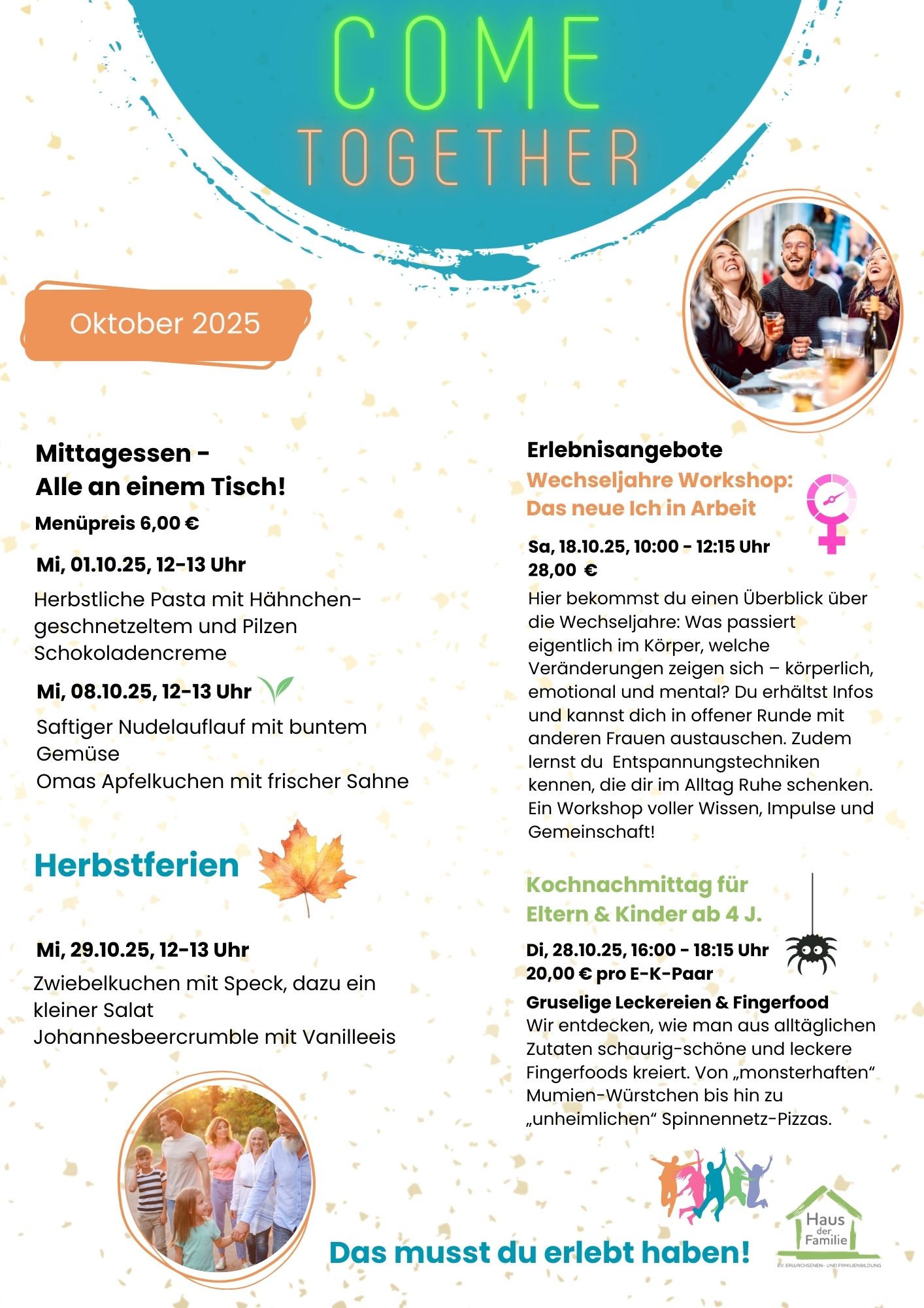Unsere monatlich wechselnden Come Together Angebote bieten einen Mittagstisch und weitere gemeinsame Erlebnisse.